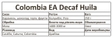 Colombia EA Decaf de Caña Huila — це кавовий вибір, що пропонує високоякісний смаковий досвід завдяки використанню натурального етилового ацетату для декофеїнізації. Це дозволяє зберегти автентичний аромат і смакові ноти, характерні для колумбійської кави, забезпечуючи при цьому можливість насолоджуватися кавою без кофеїну.